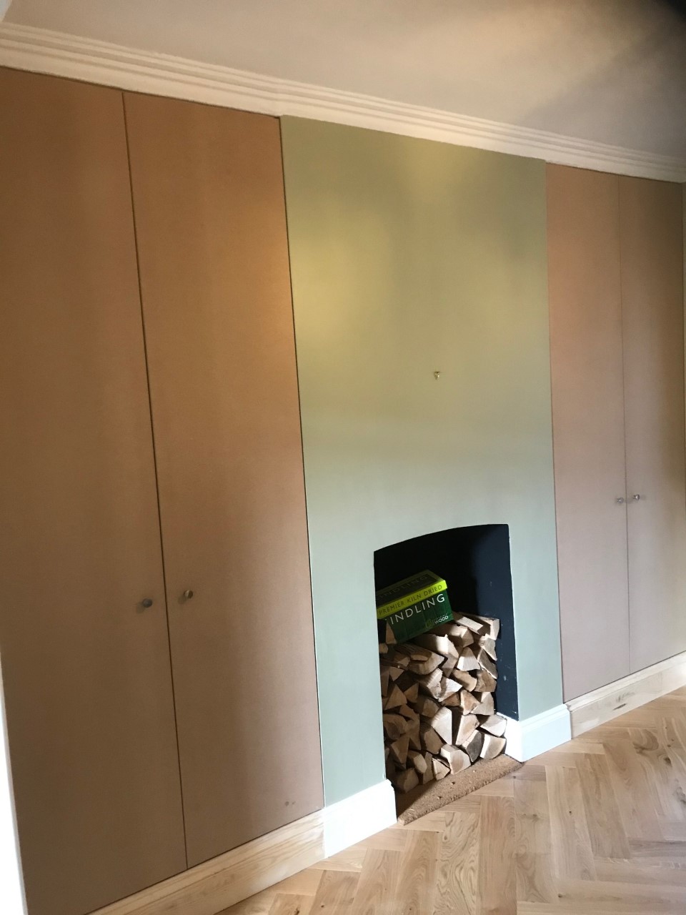 Nice simple alcove cupboard. Shaker style doors fitted with a 25mm panel moulding.