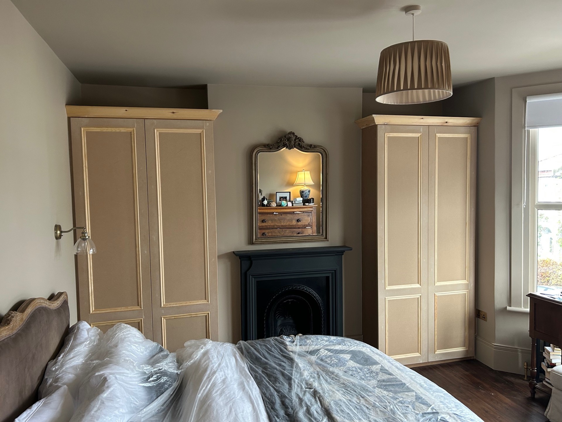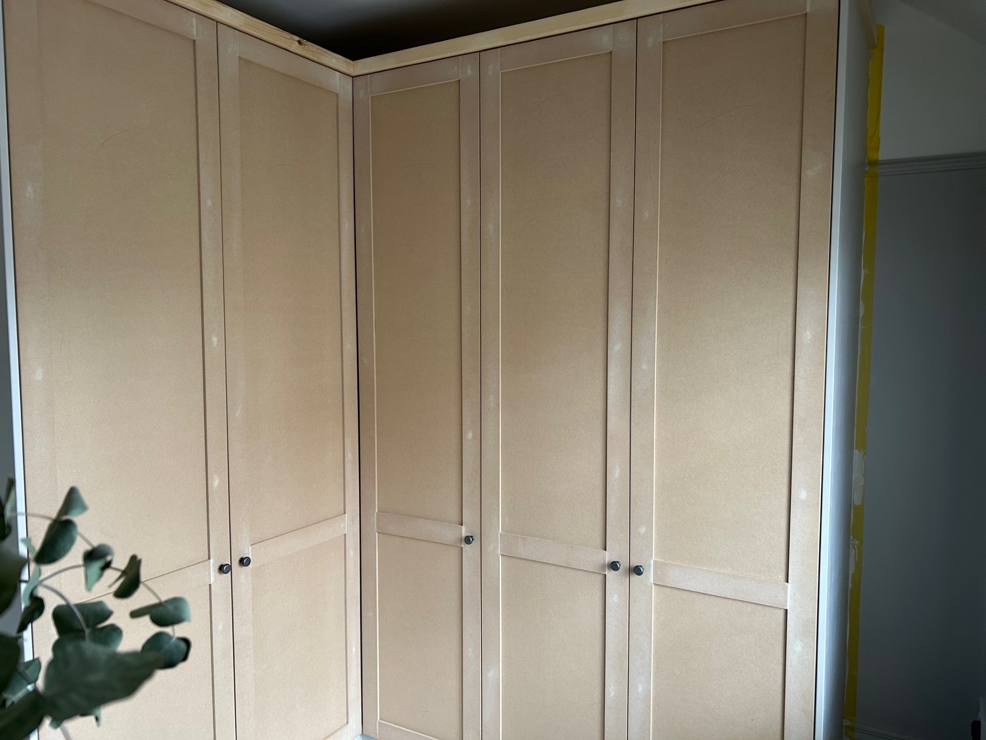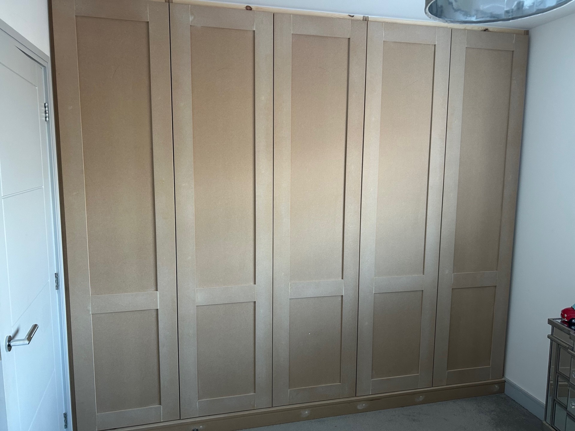 Pair of Shaker style wardrobes fitted with a 32mm panel moulding.
