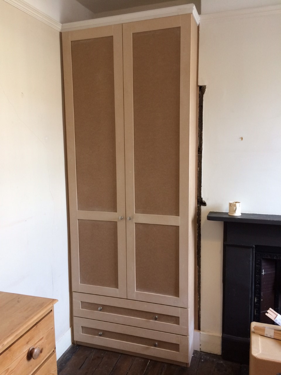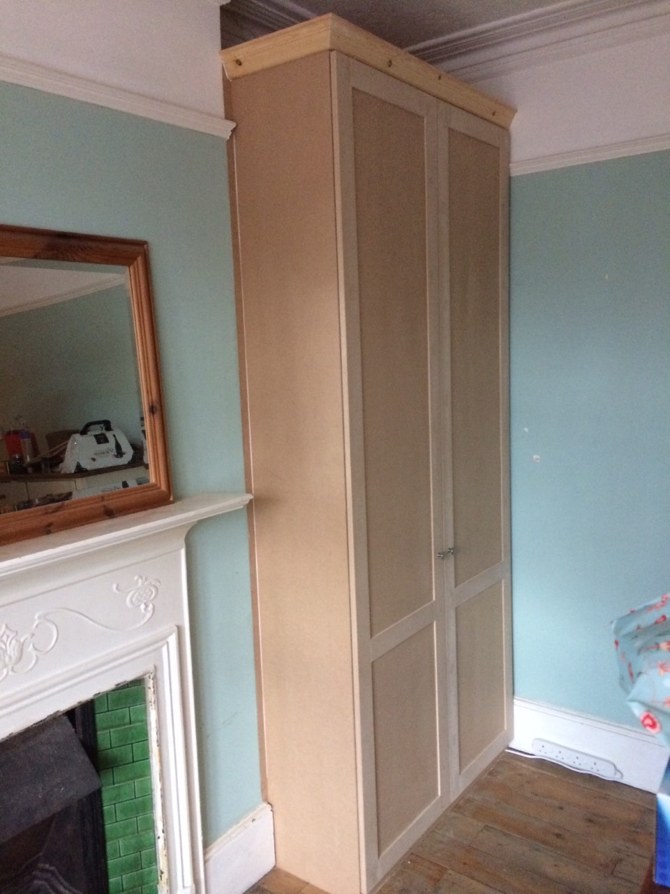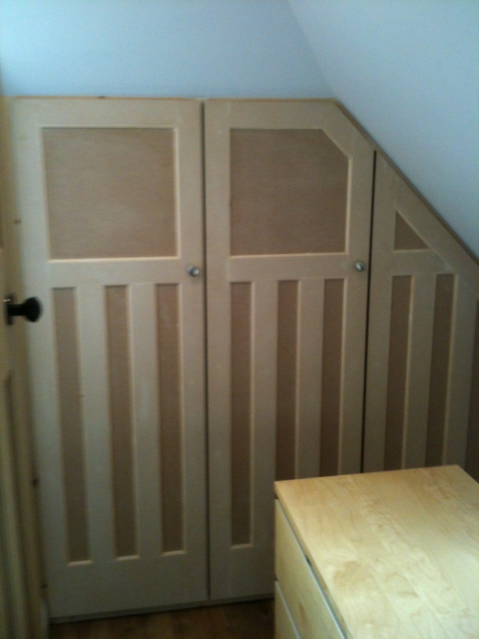 I replaced existing wardrobe doors with ones made to a design my client liked. In tongue...