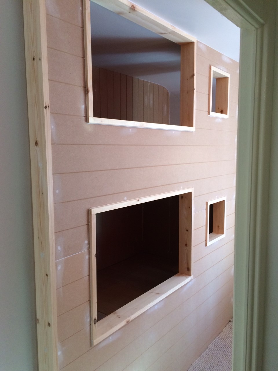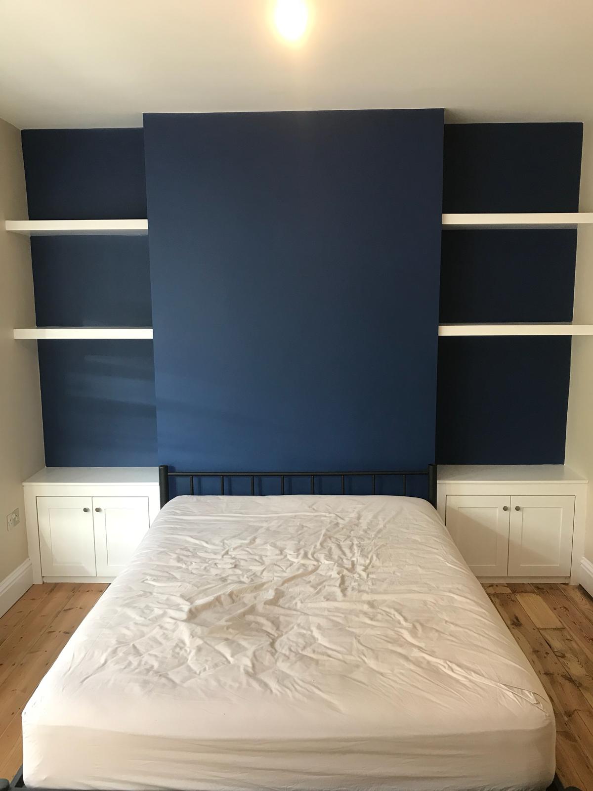 Alcove units that can be used as bedside tables with shelves fitted above.