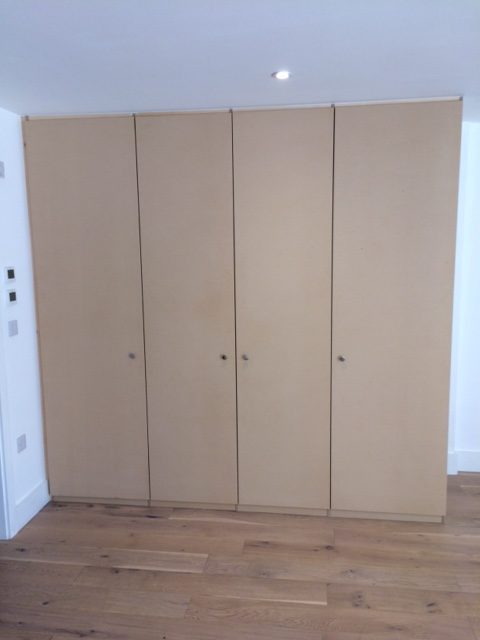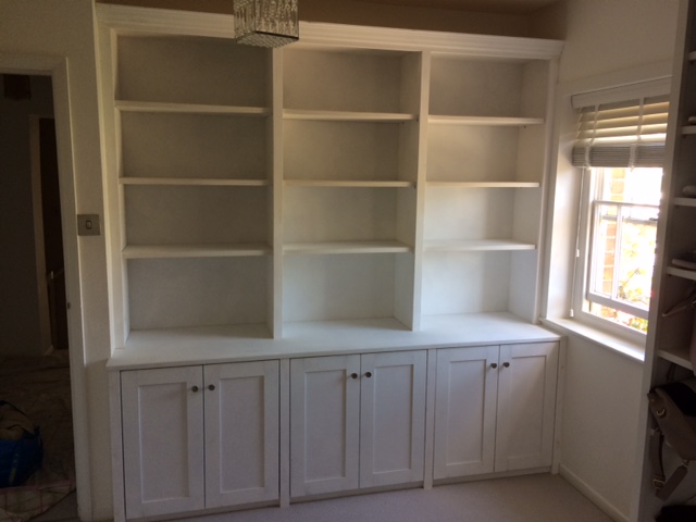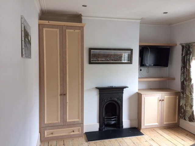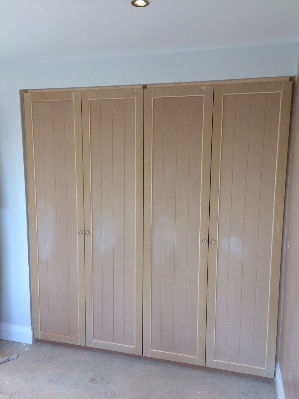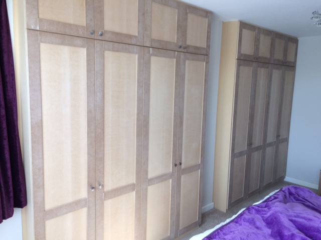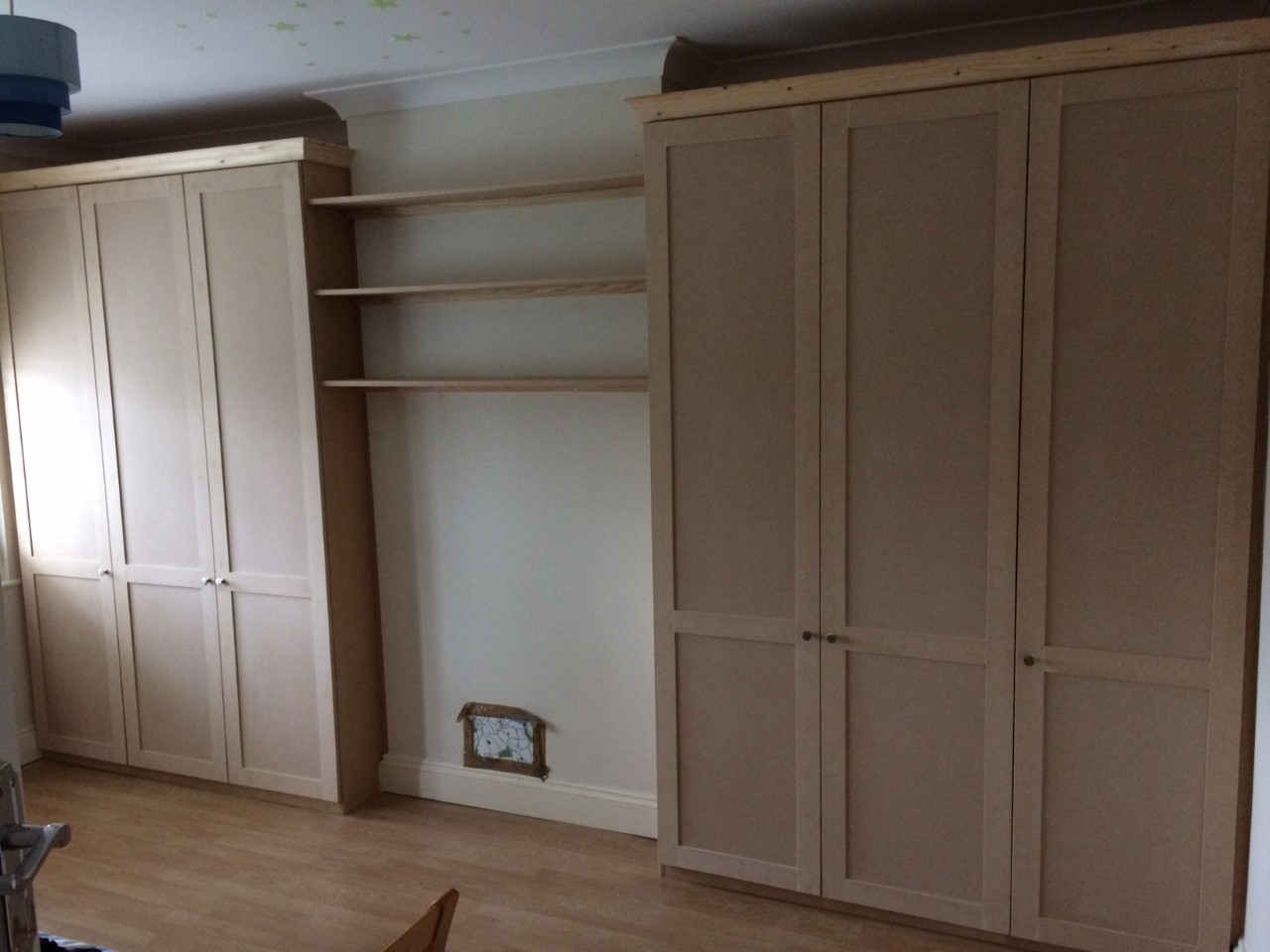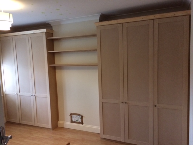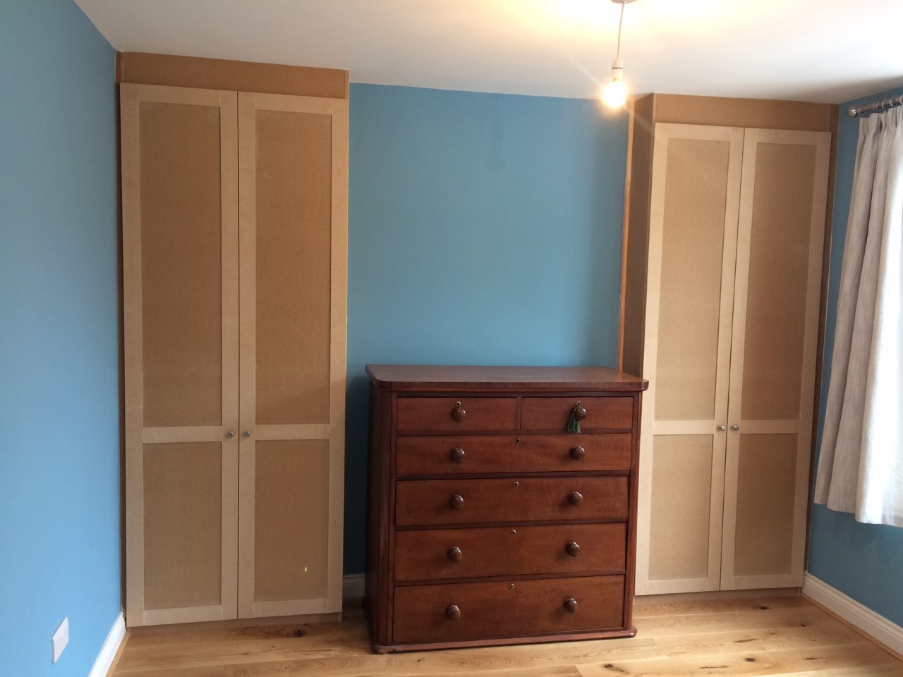 Pair of Shaker style wardrobes. The alcoves were uneven so built one side up to match the...