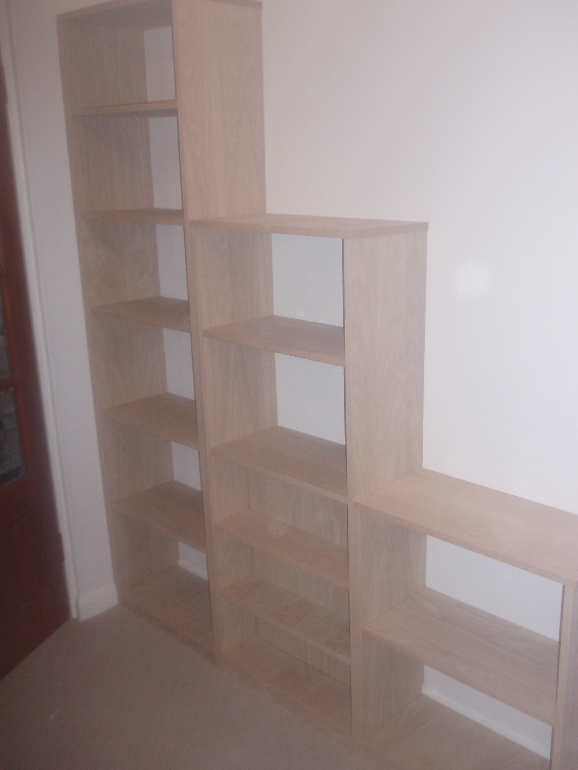 This is an oak veneered bookcase/unit. The client said to me that he wanted the shelves...