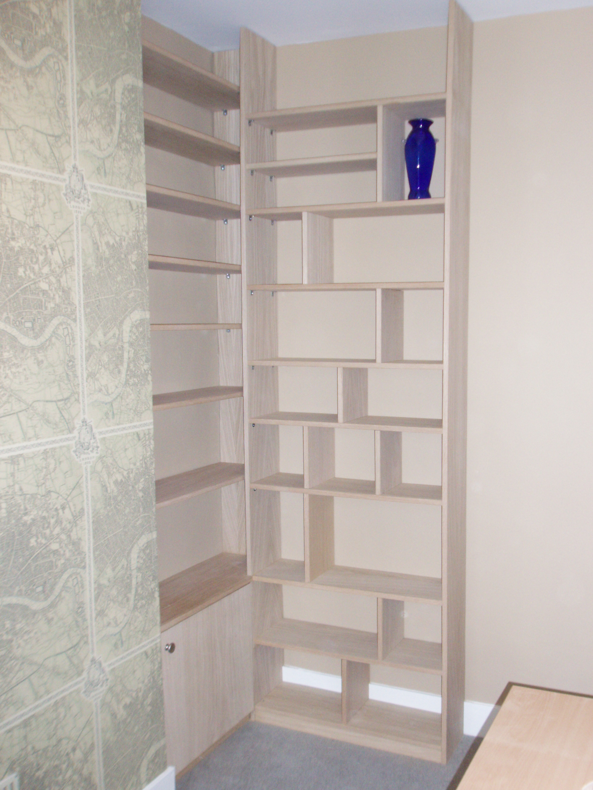 This is an Oak veneered MDF shelving unit fitted into a bedroom.They wanted to still have...