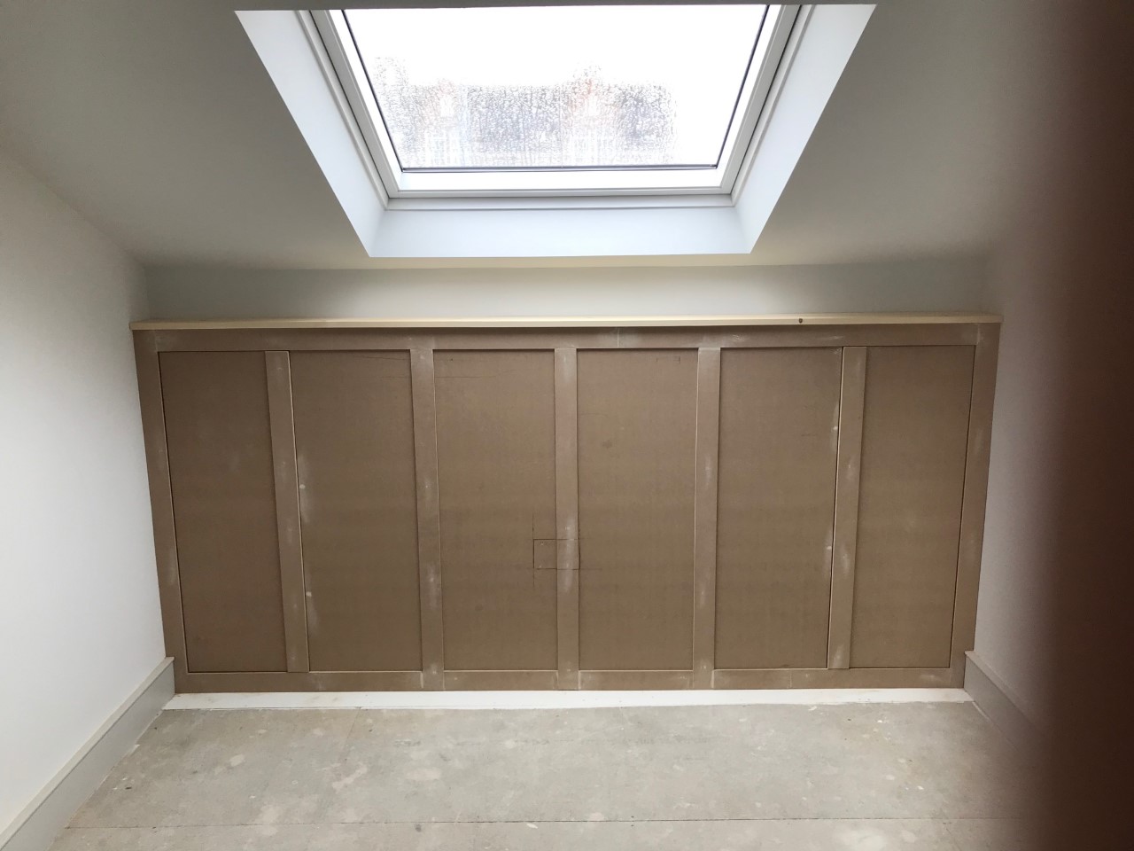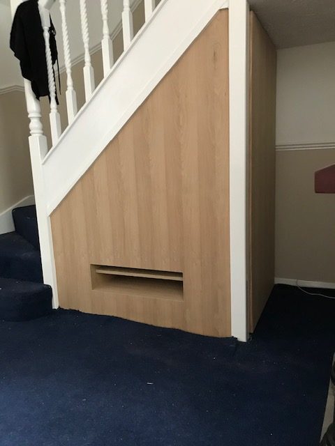 This is a 2000mm run of opening cupboards fitted under the stairs. Shaker style doors...